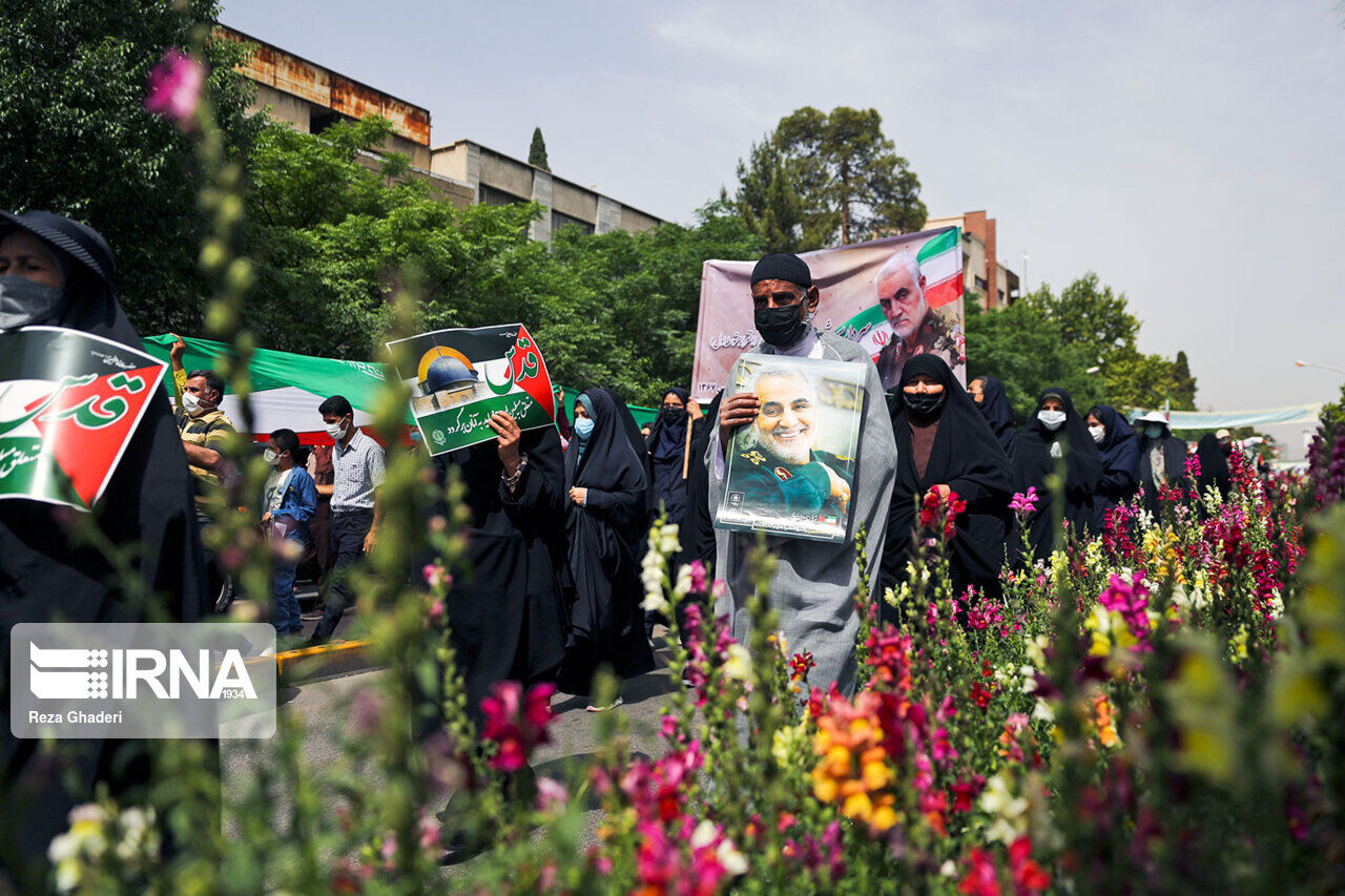 این بیانیه ادامه داد: راهپیمایی میلیونی روز جهانی قدس امروز، پس از ۲ سال دوری مردم از حضور پرشور در خیابان‌های پایتخت و ۹۰۰ شهر و روستاهای کشور به دلیل شیوع بیماری کرونا، پرشورتر و متفاوت‌تر از همیشه، نماد وحدت و نمایش خشم انقلابی ملت ظلم ستیز ایران و سیلی محکمی شد بر چهرۀ پلید رژیم کودک‌کش صهیونیستی و استکبار جهانی که یکپارچه مرگ اسرائیل غاصب را فریاد می‌کردند.